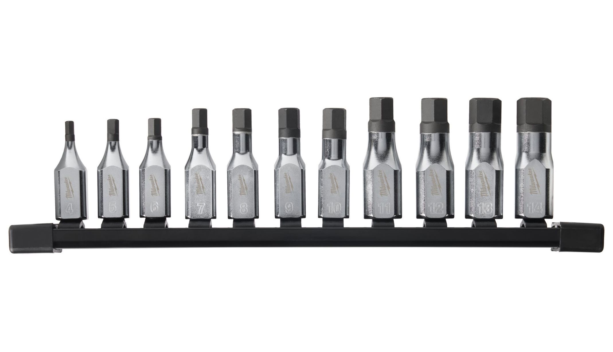 Milwaukee FOUR FLAT™ oldalú 3/8"-os imbusz belső kulcsnyílású dugókulcs készlet, hosszú, metrikus méret, 11 darabos