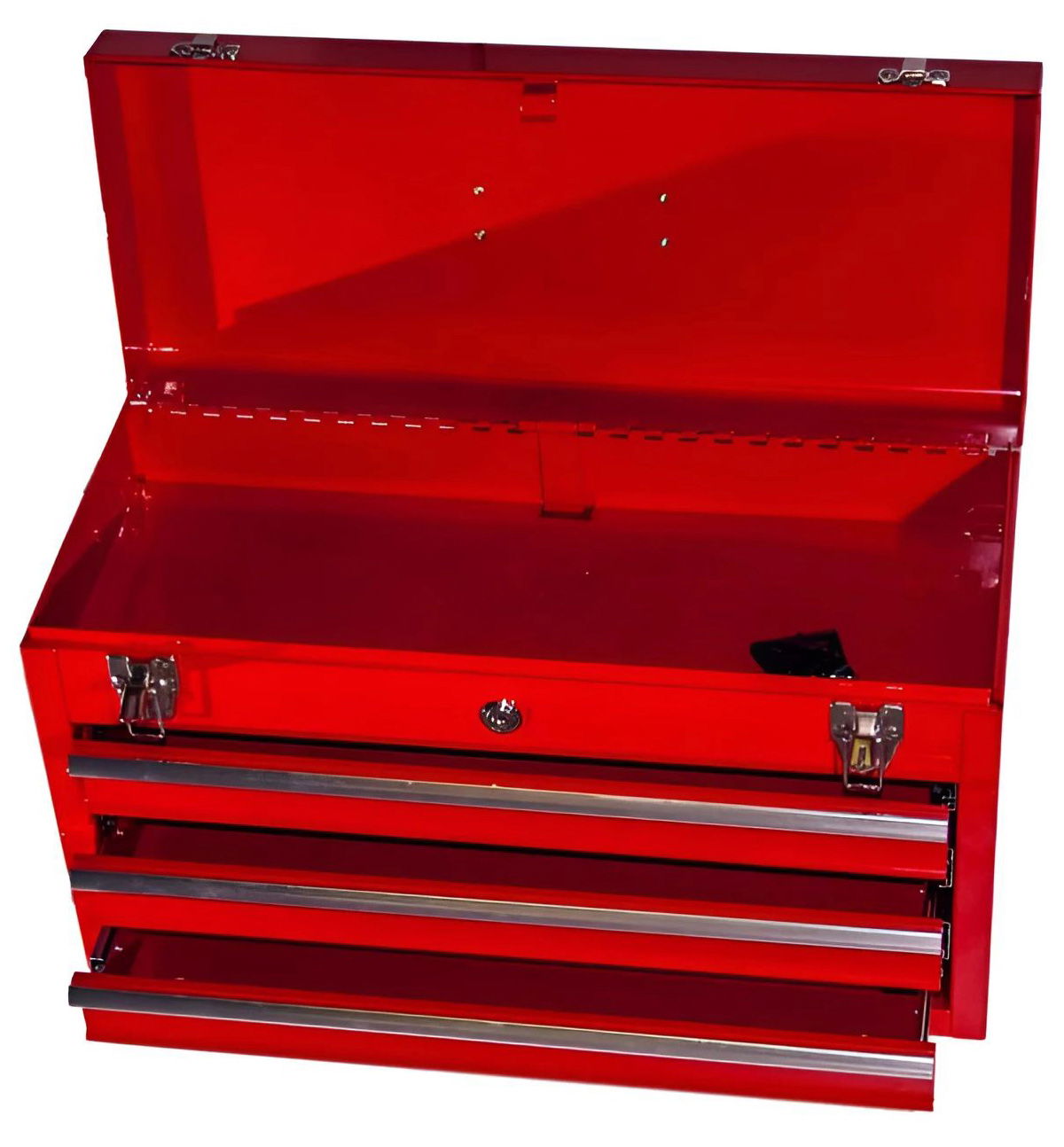 • Hordozható szerszámosláda, 3 fiókkal, 1 tároló rekesszel, fogantyúval, rögzítő kapoccsal és központi zárral.